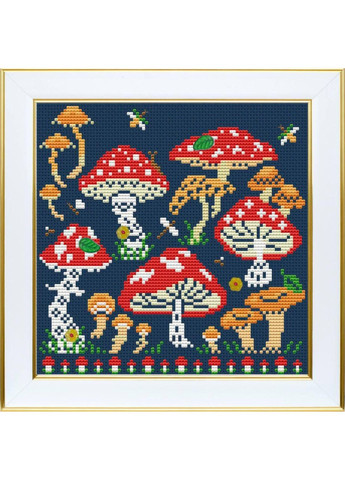 Набір для вишивання нитками муліне ДМС (DMC) картини зі стилізованим зображенням грибів мухоморів на синьому фоні. Тематика: Інше Матеріал: Аїда 16 (100% бавовна) Розмір: 14х14 см Упаковка: 1 шт. Кількість кольорів: 9 Виробник: ВДВ (Україна) Ціна вказана за 1 набір. Комплектація: - Канва для вишивки; - Муліне DMC на органайзері або на пластикових бобінках; - Голка Pony (Індія); - Кольорова рахункова схема; - Інструкція. Набір для вишивки нитками призначений для створення яскравих вишитих картин за кольоровою рахунковою схемою з використанням ниток муліне DMC, ідеально підібраних за відтінками для створення гармонійних кольорових переходів. Завдяки якісному друку паперова схема легко читається. Основа для вишивки — канва Аїда №14, Аїда №16 або натуральний льон 32 каунту, що гарантує чіткість стібків і зручність у роботі. Набір укомплектований необхідними для роботи матеріалами, інструментами та інструкцією з вишивання. Все це гарантує задоволення від творчого процесу та бездоганний результат вишивки.