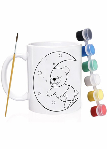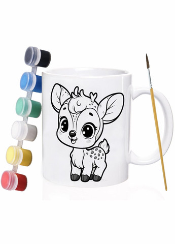 Творчий набір, який стане чудовим подарунком для дитини -допомагає крихітним непосидам заспокоїтися, розслабитися і поринути у світ фантазії; -В легкій ігровій формі у дітей розвиваються дрібна моторика, мова, координація рухів, уяву, образне та логічне мислення; -діти можуть експериментувати з квітами та створювати унікальні версії малюнків. Комплект набору: 1. Чашка: -Колір білий; -330 мл; -Кераміка; -Контуру малюнка вже нанесено на виріб. 2. Набір акрилових фарб -Яскраві акрилові фарби; -Швидко висихають і мають водостійкі властивості після висихання; -Підходять для малювання на папері та полотні, також широко використовуються для фарбування скляних, керамічних поверхонь; 6 кольорів (по 2,5 мл). 3. Пензель -Призначення: для акрилових фарб 4. Упаковка -Коробочка з красивою стрічкою, що завершує комплект подарункового набору.