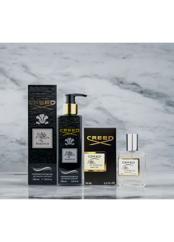 1. Парфумований гель для душу для чоловіків Creed Aventus 250 мл 2. Aventus Perfume Newly чоловічий 58 мл Групи ароматів Фруктові, Шипрові Кінцева нота Амбра, Ваніль, Дубовий мох, Мускус Мoдель Aventus Початкова нота Ананас, Бергамот, Чорна смородина, Яблуко Нота серця Береза, Жасмин, Пачулі, Троянда Стати Чоловічий