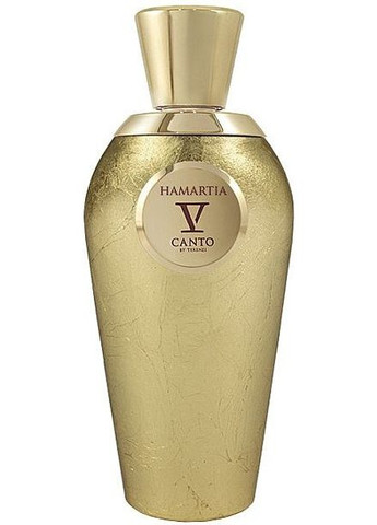 V Canto Hamartia Extrait De Parfum – гурманський пряний деревний аромат для чоловіків та жінок, створений у 2023 році. Парфумер - Паоло Теренці (Paolo Terenzi). Назва «Hamartia» відсилає до давньогрецьких трагедій. Це похідне від грецького hamartanein, що означає помилятися. Трагічна помилка, досконала через незнання чи пристрасті, призводить до драматичних наслідків, але ці наслідки герой сприймає з гідністю. Він відмовляється від марних жалю, відкидає заборони, і вільний від громадського засудження вирушає туди, де буде щасливий. Hamartia - розкішний аромат з нотами гріха, драми та спокуси.