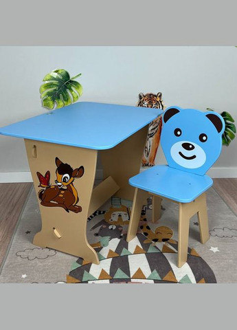 Характеристики: Стіл: Розмір (ВхДхШ): 46х60х45 см Матеріал: МДФ Глибина ящика: 80 см Фарба: Екофарба. Не викликає алергії в діток Стільчик розміри: Висота від підлоги — 26 см. Ширина — 26 см. Глибина — 24 см. Особливості наших меблів Цікавий дизайн Просте збирання Надійна та зручна у використанні конструкція Підходить для навчання та ігор Виготовлений відповідно до гостини для дітей 1 групи зросту (100-115 см) ⠀ Підходить для дітей від 1,5 до 7 років.⠀ Для замовлення Доступні 2 кольори кришки стільця: синій і персиковий, також 3 варіанти мультяшних героїв на столику: зайчик, оленя, левеня Із задоволенням відповідаємо на всі питання за телефоном або в месенджерах