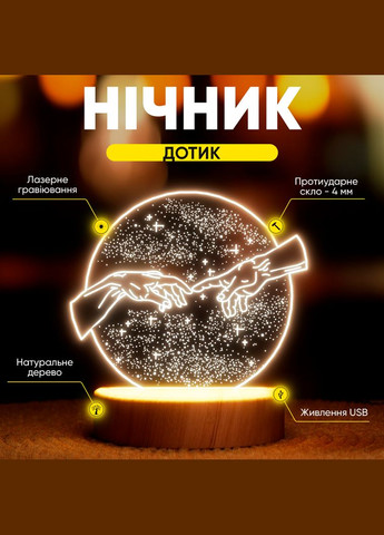 Коротко про нічник: Це серія нічників з натурального бука і протиударного акрилу, яка виготовляється повністю в Україні компанією Lampic. Істотно відрізняється від інших акрилових нічників якістю, яскравістю і довговічністю. Працює від USB. У той час, коли на ринку багато нічників працюють на батарейках - ми від них відмовилися на користь USB. Батарейок вистачає на 24 години роботи, потім потрібно купувати нові. Ми прагнули зробити продукт автономним, щоб користувачеві не доводилося регулярно витрачати гроші і час на докупівлю батарейок. Тому наш нічник працює від найуніверсальнішого способу живлення - USB, який під'єднується до розетки/ноутбука/персонального комп'ютера/повербанка/зарядної станції та взагалі до будь-якого джерела живлення з usb роз'ємом. Це робить нічник корисним в дорозі/під час відключень електроенергії/в місцях без розеток або електрики. Яскраве і насичене світло. У нічник вбудована стрічка на 12 світлодіодів, яка робить світло рівномірнішим, яскравішим, а колір насиченішим. Для порівняння - майже всі моделі акрилових нічників, які представлені на ринку - оснащені стрічкою всього на 6 світлодіодів. Як наслідок - наш нічник викликає більше "Вау" ефекту і краще освітлює кімнату. Справжнє гравіювання замість друку. Хочете дізнатися, як робиться цей ефект "сяючої" ілюстрації, яка і робить цей тип нічників таким красивим? Товстий шар акрилового скла повністю пропускає через себе промені світла і має... звичайний вигляд, але тільки до гравіювання. Під час гравіювання спеціальний високоточний лазер високою температурою плавить акрил і випалює всі дрібні деталі ілюстрації. Випалені області затримують на собі світло і починають світитися. Візуально це має такий вигляд, немов по склу проходить багато дрібних світлодіодів, і нічник має чарівний вигляд. Крім чудового вигляду, гравірування має ще одну перевагу - його неможливо стерти. Якщо надруковане зображення з часом тьмяніє і стирається, гравірування живе стільки, скільки існує нічник, і навіть через 10 років буде таким же виразним, яскравим і привабливим, як у день покупки. Якщо вам важлива довговічність - наш нічник вас здивує. Гарантійне обслуговування на кожен нічник. На відміну від магазинів, які перепродують нічники з Китаю, наші нічники від підставки до гравіювання робляться в Україні, в Івано-Франківську. Тому, якщо щось зламалося, це можна відправити поштою і полагодити. Ви отримуєте гарантію на нічник протягом 1 року. У разі пошкодження в дорозі, ми відправимо новий. У разі проблем/питань, ви можете зателефонувати і отримати допомогу безпосередньо від виробника. Дякуємо, що дочитали. З усіх питань пишіть/дзвоніть. Будемо раді!