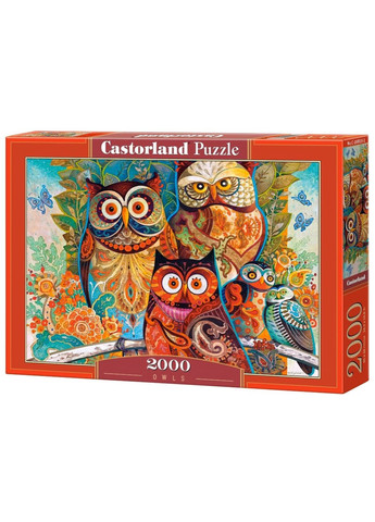 Пазл "Сови" 2000 ел. Castorland C-200535 -логічна гра головоломка.Розмір картини 920х680 мм дає змогу прикрасити такими пазлами велике приміщення. Картина виглядає дуже вражаюче завдяки високій якості виробництва, гарній стиковці елементів. Компанія "Castor Printing and Publishing House", що знаходиться в Польщі, часто просто називають "касторленд". Вона випускає класичні пазли на картоні прямокутної форми у яскравих червоних коробках із зображенням зібраного пазла.