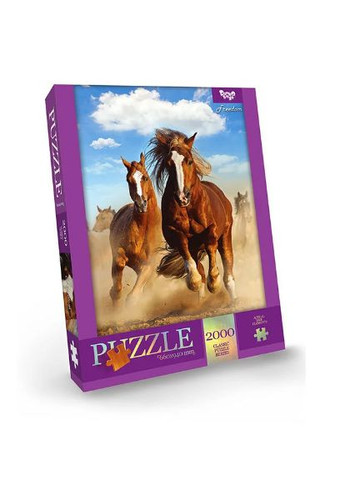 Пазли тварини Коні на 2000 деталей Пазли багато деталей, картонні класичні Danko Toys Пазли та головоломки Пазл на 2000 елементів "Данко Тойс" (Україна) Гра-головоломка, що є мозаїкою, яку потрібно скласти з безлічі фрагментів малюнка різної форми. Розмір зібраної картинки: 660 х 940 мм. Розмір упаковки: 29 х 39 х 4 см Вага: 865 г Кількість деталей: 2000. На думку психологів, гра в пазли сприяє розвитку образного та логічного мислення, довільної уваги, сприйняття, зокрема, розрізнення окремих елементів за кольором, формою, розміром тощо; вчить правильно сприймати зв'язок між частиною та цілим, розвиває дрібну моторику рук.