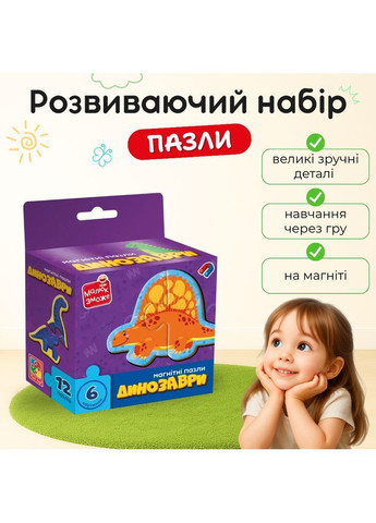 Пірнайте у дивовижний світ кумедних фігурок із навчальним ігровим набором ЗВІРЯТКА-ПАЗЛИКИ! Чудернацькі форми, яскраві кольори та милі зображення звірят відразу ж привертають увагу і спонукають якнайшвидше дослідити цікаву новинку. Нумо поринати у захопливу гру! Ігровий набір знайомить малюка з різними кольорами і формами. Усі елементи створені у вигляді тваринки: лева, кита, динозавра та інших. Безліч варіантів гри: пазли, вежі, балансири та інші допомагають розвивати фантазію та просторове мислення. Пазл: з’єднуйте звірятка-пазлики вертикально або горизонтально, щоб створити коло, прямокутник, квадрат або ж просто поєднуйте за схожими контурами. Вежа: почергово викладайте елементи за подібними формами якомога вище. Балансир: поєднуйте блоки вертикально за протилежними контурами фігур. Грайте у рольові ігри: розігруйте різноманітні сценки та будуйте цікаві сюжетні лінії з тваринками. Звірятка-пазлики зручно брати й складати дитячими ручками, адже вони легкі й великі. Складання елементів допомагає розвинути зорово-моторну координацію, просторовий зір, концентрацію, посидючість, регулювання рухів і зусиль. Ігровий набір дає змогу розвинути: кругозір; дрібну моторику; розвиток уваги. До набору входить: 12 елементів. Kiddi Smart — ваш іграшковий експерт! Рекомендовано для дітей віком від 1 року.
