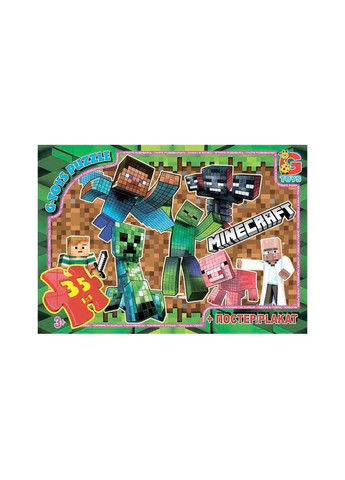 Яскраві пазли "майнкрафт" на 70 деталей. Розмір картинки: 30 х 21 см. Розвивають логічне мислення, дрібну моторику рук, посидючість. Постер в подарунок.