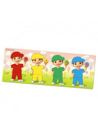 У наборі: 12 деталей та 12 карток. Завдання дитини: одягнути всіх хлопчиків як на картці-завданні. 1. Розвиток логічного і понятійного мислення 2. За допомогою такого методичного матеріалу, діти пізнають навколишній світ. 3. Розвивається дрібна моторика. Вставляючи певним чином детальки, чудово тренуються пальчики. 4. Працює зорова пам'ять, тренується увагу і посидючість.