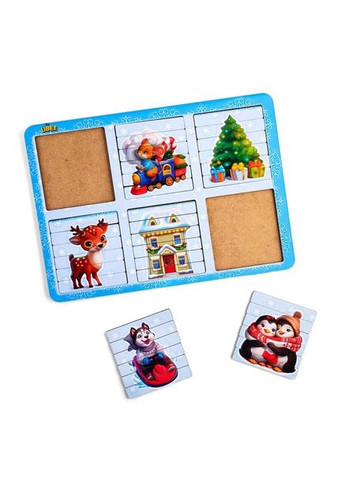 Дерев'яний планшет-рамка, на якому зображені 4 різні картинки, які вказують на пори року. Необхідно правильно відсортувати і зібрати всі 4 ряди плашок (20 картинок) із зображенням різних предметів і персонажів по сезонах.