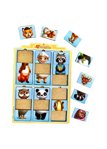 Шість картинок тварин, які потрібно зібрати на планшеті. Половинки взаємозамінні, можна зібрати не тільки "лисичку", а й "пандо-лисо-овечку". Деталі зручно діставати пальчиками. Фантазуйте та змішуйте деталі пазла. 1. Розвиток логічного мислення. 2. За допомогою такого методичного матеріалу діти пізнають навколишній світ. 3. Розвивається невелика моторика. Діставаючи та вставляючи певним чином деталі сортера, діти чудово тренують пальчики. 4. Працює зорова пам'ять, тренується увага та посидючість. Розміри: 22 х 31 см. Упаковка: Без упаковки Вид: Дошкільні Габарити довжина: 31 Габарити ширина: 22 Висота висоти: 1 Стан: Новий Матеріал: Дерево Тип: Дерев'яні пазли-вкладиші Колір: Різні кольори Вікова група: Від 2 бренду: Україна Стать: Унісекс Країна-виробник товару: Україна Вік: Від 2-х років Гарантія: 14 днів Бренд: Ubumblebees Країна реєстрації бренду: Україна; Виробник: Ubumblebees; Бренд: Ubumblebees; Країна-виробник товару: Україна; Габарити: ширина: 22; Габарити: висота: 1; Габарити: довжина: 31; Вага товару: 0; Вид: Дошкільні; Вік: Від 2-х років; Матеріал: Дерево; Тип: Дерев'яні пазли-вкладиші; Торгова марка: Ubumblebees; Колір: кольоровий; Розмір виробу: 1х31х22 см; Стать: Унісекс; Упаковка: Без упаковки; Вікова група: Від 2 років;