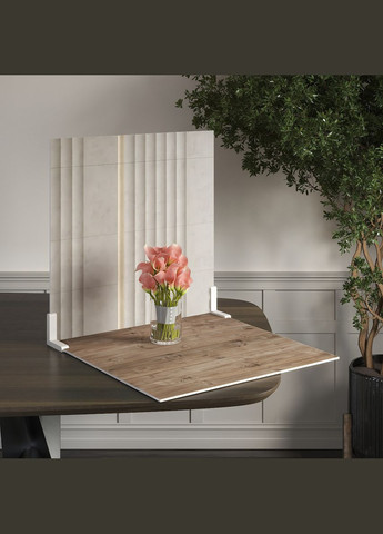 ПОЛІУРЕТАНОВІ ПАНЕЛІ Поліуретанова плитка – настінне покриття, призначене для внутрішнього оздоблення. Поліуретановий шар на поверхні плитки створює 3D ефект, що імітує керамічну плитку. Для зручності стикування плитка може мати форму пазла чи квадрата. Матеріал: поліуретан PU, поліетилентерефталат PET у поєднанні з поліетиленом РЕ Розміри: 305 х 305 х 1 мм Вага: 88 г Площа покриття: 305 х 305 мм – 0,09 м ² Фактура: імітуюча керамічну плитку/мозаїку, поверхня глянцева Плитка складається з наступних шарів: Захисна плівка: зберігає поліуретанову поверхню від подряпин, відколів та інших механічних пошкоджень у процесі транспортування. Після проведення монтажу плівка знімається з поверхні плитки. Поліуретановий шар: Створює 3D ефект на поверхні плитки. Поліуретан є полімером, який формується шляхом хімічної сполуки ізоціанату та поліолу, що призводить до утворення сегментованої молекулярної структури. Декоративний шар: кольоровий друк високої роздільної здатності, що імітує фактуру керамічної плитки та частково природних матеріалів, завдяки чіткому та детальному зображенню, а УФ-захист допомагає запобігти вигоранню, зберігаючи колір насиченим. Базовий шар з РЕТ: суміші поліетилентерефталату (PET) і поліетилену (PE) - матеріал, що складається з молекулярних одиниць етиленгліколю і терефталевої кислоти, що повторюються, має аморфну структуру, завдяки чому, матеріал наділений жароміцністю (до +75º С), стійкістю до стирання. Поліетилен (РЕ), присутні у складі з поліетилентерефталатом (PET), наділяє його стійкістю до хімічних речовин та механічних пошкоджень, при цьому матеріал залишається пружним. Фольгований шар: основна властивість цього шару – відображення теплових хвиль, що дозволяє мінімізувати теплові втрати, тим самим покращити теплоізоляцію приміщення. Клейовий шар: нетоксична основа з високим рівнем адгезії. Захисний силіконізований папір: зберігає клейовий шар від пересихання та забруднення, легко знімається під час монтажу. Застосування: внутрішні оздоблювальні роботи: декорування стін у всіх видах житлових приміщень (кухня, вітальня, дитяча або спальня, вхідна група) та комерційних приміщень (офісні приміщення, зони рецепцій, магазини, салони краси або фітнес-центри), декорування меблів, дверей та інших рівних поверхонь. Властивості та переваги матеріалу: Легка установка: шар, що самоклеїться, робить процес укладання швидким і простим, не вимагаючи додаткових матеріалів або фахівців. Матеріал можна різати ножицями або монтажним ножем, між смугами не розходиться, не набухає та не деформується. Стійкість до вологи: поліуретанова вологостійка плитка, що робить її відмінним вибором для ванних кімнат, кухонь та інших приміщень з підвищеною вологістю, матеріал стійкий також до впливу пари і появи цвілі. Довговічність: міцність та зносостійкість поліуретану дозволяє плитці залишатися в первинному стані протягом тривалого періоду часу. Естетична складова: широкий вибір дизайнів та кольорів дозволяє підібрати покриття, яке відповідає вашому стилю та інтер'єру, дуже добре комбінується за колірною гамою, дозволяючи створити власний дизайн приміщення. Легкий догляд: поліуретан легко очищається і не вимагає спеціальних засобів для чищення. При пошкодженні окремої плитки можна легко замінити її без необхідності великого ремонту. Ек