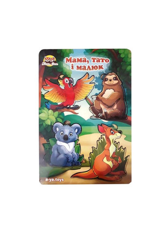 12 фігурок диких тварин (по 3 штуки кожного виду: тато-мама-малюк) різного розміру, які необхідно вкладати на своє місце за формою та розміром. За допомогою таких вкладишів можна легко пояснити дитині поняття "великий", "середній" та "маленький", пограти в гру "Де чий малюк, мама чи тато?". Поговоріть, які звуки видають ці тварини. Ця гра розвиває зорово-моторну координацію (рука-око) дрібну моторику, а також з її допомогою можна пояснити елементарні математичні поняття: рахунок (порядковий, зворотний), кількість, величину.