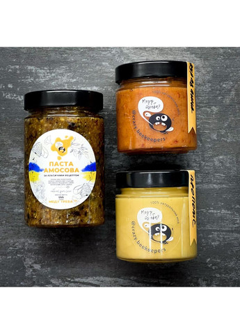 У холодний сезон організм потребує особливої підтримки. Саме тому ми створили набір «Імунітет», що об’єднав найсильніші натуральні продукти для захисту та зміцнення здоров’я - потужний набір корисних медових паст, який допоможе впоратися із різними проблемами в організмі. ✔ Зміцнює імунну систему та допомагає організму протистояти вірусам і бактеріям. ✔ Підтримує серцево-судинну систему та додає енергії. ✔ Має антибактеріальні та противірусні властивості завдяки прополісу. ✔ Насичує організм вітамінами, мінералами та антиоксидантами. ✔ Є смачним і корисним доповненням до щоденного раціону всієї родини. ✔ Паста Амосова - це особливе поєднання натурального меду та сухофруктів. Вона має надзвичайний смак та аромат, а також є багатим джерелом поживних та корисних речовин. Ця паста призначена для ефективної підтримки організму та зміцнення імунітету, що особливо актуально в холодну пору року. Її рекомендують вживати дорослим, включаючи людей похилого віку, та дітям. підтримка серцево-судинної системи - волоські горіхи багаті на ненасичені жирні кислоти, які знижують рівень холестерину, а калій у сухофруктах допомагає регулювати артеріальний тиск. Цитрусові підтримують еластичність судин, сприяючи покращенню кровообігу. зміцнення імунітету - лимон потужне джерело вітаміну С, який активізує захисні сили організму. Мед, відомий своїми антибактеріальними властивостями, допомагає боротися з інфекціями. покращення травлення - чорнослив і курага містять багато клітковини, що сприяє роботі кишківника, полегшує травлення та допомагає боротися з закрепами. зниження стресу - магній, що міститься у сухофруктах і горіхах, допомагає розслабити нервову систему, знижує рівень стресу та покращує сон. енергетична підтримка - це натуральне джерело швидких вуглеводів, які забезпечують організм енергією на весь день. антиоксидантний захист - лимон містить антиоксиданти, які нейтралізують вільні радикали, запобігаючи передчасному старінню клітин. ✔ Прополісний крем-мед - зручна, універсальна форма використання прополісу з лікувальною метою, він має виражену антисептичну (антибактеріальну, противірусну і протигрибкову) дію, застосовується як болезаспокійливий, ранозагоювальний засіб. Підвищує захисні сили організму і сприяє якнайшвидшому одужанню при самих різних захворюваннях. уповільнення старіння профілактики онкологічних захворювань антисептичного ефекту лікування обморожень, опіків, грипу, ГРЗ, застуди, артриту, артрозу профілактики хвороб шлунку і дихальних шляхів лікуванні захворювань шлунково-кишкового тракту або їх профілактиці зниженні головних болів стабілізації функціонування печінки, нирок, кишечника і серця Завдяки імуностимулюючим, антитоксичним і загальнозміцнювальним властивостям, прополіс добре поєднується з хіміотерапевтичними засобами — він підсилює їхню дію і знижує ризик побічних ефектів. ✔ Крем-мед з журавлиною – це досконала вітамінна бомба, неймовірно корисно для серцево-судинної системи, сповільнює старіння, поліпшує роботу травної системи, виводить токсини. багата на вітамін C, який зміцнює імунітет та захищає від застуд; містить антоціани та флавоноїди, що мають протизапальну та антибактеріальну дію; допомагає підтримувати здоров’я нирок і сечовидільної системи; сприяє нормалізац