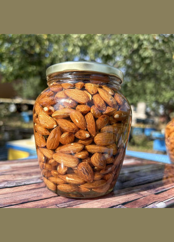 Надзвичайне поєднання смачного, хрумкого мигдалю з солодким медом. Завдяки цій композиції згладжуються солодкість меду і сухість горіху, що приносить максимум задоволення від цих продуктів. Попри смачнющість Мигдаль з медом - дуже корисний десерт. Способи прийому: 1-2 столові ложки горіхово-медової суміші на день після їжі додавати у смузі, коктейлі, зробити мигдальну пасту у блендері, перемішати з печивом і подрібнити в блендері, сформувати шарики, буде тістечко, яке ще можна полити шоколадом чи глазурю, додати у творог чи у домашній йогурт, кефір Протипоказання до вживання алергія