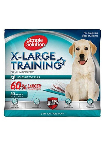 Simple Solution X-Large Training Pads - вологопоглинаючі гігієнічні пелюшки збільшеного розміру. Розмір: Ширина – 71 см, довжина – 76,2 см. Чому варто купити? Підходять для гігієни собак, які мешкають у закритому приміщенні. Запобігають перебігу. Прискорюють привчання щенят до туалету у правильному місці. Ідеально для подорожей та використання в ручному перенесенні. Вбирають на 100% більше вологи, ніж інші «економні» пелюшки. Внутрішній шар є сильним абсорбентом, що містить спеціальні полімери, які утримують неприємні запахи всередині, пригнічують розвиток мікроорганізмів. Розташуйте пелюшку поліетиленовою стороною вниз. Коли ви помітите, що щеня хоче в туалет, поставте його на пелюшку. Поступово щеня звикне і самостійно ходитиме у відведене йому місце. Використану підстилку викинути та замінити на нову.