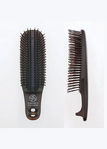 Модель Scalp Brush Gold - Бестселер компанії S-Heart-S і лауреат багатьох нагород. Ця гребінець має 376 зубчиків, вона універсальна і підійде для будь-якого типу волосся (в тому числі густих, довгих, кучерявих), для «розплутування» складних укладок і начосом. Ідеальна для щоденного догляду: укладання, миття з шампунем, масажу шкіри голови. Це найм'якша гребінець з усієї лінії, тому вона чудово підійде навіть дітям та людям з чутливою шкірою голови. ⠀ Переваги використання гребінця Scalp Brush Gold: -Покращує кровообіг, стимулюючи ріст волосся і покращує їх якість. -Сприяє чудовому очищенню (адже на нашій голові більше 40.000 пір, які неможливо промити руками) -Створює прикореневій обсяг -В рази підвищує ефективність будь-яких засобів по догляду за волоссям (бальзами, сироватки), так як ідеально розподіляє засіб. -Вирішує багато трихологические проблеми без додаткових засобів (свербіж, лупа, чутливість шкіри) -При регулярному використанні Покращує колір обличчя і сприяє ліфтінгу (адже м'язи скальпи безпосередньо пов'язані з м'язами нашого особи) -При використанні під час укладання працює з кутикулою, даруючи гладкість, блиск і знімаючи статичну електрику. Представлена в 2 варіантах - укорочена і з довгою ручкою. Укорочена модель створена з урахуванням анатомії зап'ястя і ідеальна для використання при митті голови (в душі або перукарні мийці). Також її зручно носити з собою Модель з довгою ручкою також підійде і для укладання