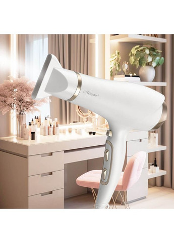 Фен Maestro MR-214 2300 Вт білий Фен Maestro MR-214— компактний та стильний прилад для щоденного укладання та сушіння волосся. Оснащений потужністю 2300 Вт, забезпечує дбайливий догляд та зручне використання. Характеристики: Тип: фен Тип управління: механічне Матеріал корпусу: пластик Потужність: 2300 Вт Кількість швидкостей: 2 Кількість температурних режимів: 3 DC двигун З професійним концентратором Режим подачі холодного повітря Підвісна петля Захист від перегріву Колір: білий Виробник: Maestro
