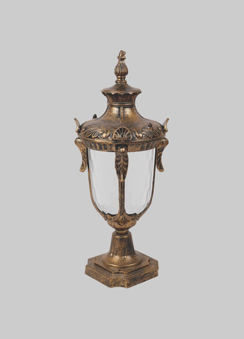 Стильний вуличний підлоговий міні-ліхтар - практичне та сучасне рішення для вашого приватного будинку/ресторану/готелю. Корпус зроблений з металу у відтінку бронза/старе золото, його доповнює скляний плафон, що стане сучасним акцентом у вашому саду або прибудинковій території. Ліхтар працює від мережі та розрахований на 1 лампу з типом цоколя Е27, що додасть затишку та м'яко висвітлить територію. Ліхтар також захищений від вологи та пилу, що збільшить термін служби. Колір - під старе золото/бронзу Матеріал - метал, скло Джерел світла - 1 Тип цоколя - Е27 Розмір - 17х42см (ш/в)