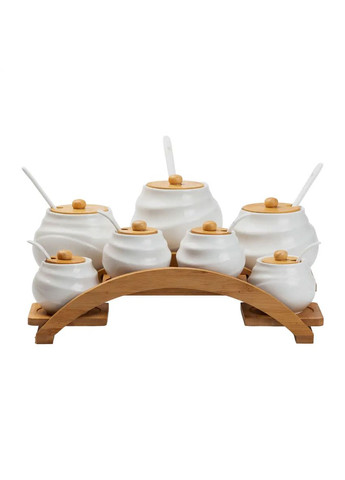 Набір скляних банок для сипучих продуктів на підставці (4 штуки по 350 мл) Організуйте простір вашої кухні за допомогою стильного та зручного набору скляних ємностей для зберігання сипучих продуктів. Цей набір стане ідеальним рішенням для зберігання продуктів, таких як цукор, сіль, спеції, крупи або інші сипучі інгредієнти. Кожна ємність має об'єм 350 мл, що робить їх ідеальними для зберігання невеликих порцій продуктів, які завжди під рукою. Ці банки виготовлені з високоякісного прозорого скла, що дозволяє легко побачити вміст і швидко визначити, коли продукт потрібно поповнити. Прозорість матеріалу також сприяє збереженню свіжості продуктів, оскільки скло не вступає в реакцію з зберіганими речовинами, не змінюючи їх смак і аромат. Знімні металеві кришки забезпечують надійне закриття, запобігаючи потраплянню вологи та забруднень, а також допомагають підтримувати ідеальні умови для зберігання. Набір зручно встановлюється на підставці, що надає йому додаткову стійкість і допомагає утримувати всі ємності в одному місці, заощаджуючи простір на вашій кухні. Додаткові особливості та переваги: Компактність та зручність: Набір складається з 4 ємностей, що дозволяє зручно розподілити різні продукти, не займаючи багато місця на кухні. Прозоре скло: Дозволяє легко контролювати кількість продукту та його стан. Металеві кришки: Забезпечують герметичність, надійно захищаючи вміст від вологи та забруднень. Стильний дизайн: Підставка та ємності в сучасному стилі ідеально підходять для будь-якого інтер'єру кухні. Легкість в догляді: Скло легко миється, що робить контейнери зручними для повсякденного використання. Універсальність: Підходить для зберігання різних сипучих продуктів, таких як цукор, сіль, спеції, чай, каву, крупи тощо. Характеристики: Кількість ємностей: 4 штуки Розмір набору: 38х9.5х10 см Об'єм однієї ємності: 350 мл Висота однієї ємності: 14 см Матеріал ємностей: скло Матеріал кришок та підставки: метал Цей набір скляних банок для сипучих продуктів – не тільки практичне, але й стильне рішення для вашої кухні. Він допоможе організувати простір, забезпечуючи зручний доступ до необхідних інгредієнтів, а також надасть вашій кухні сучасний та естетичний вигляд. Оновіть свою кухню з цим унікальним та функціональним аксесуаром!