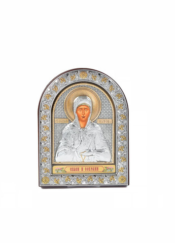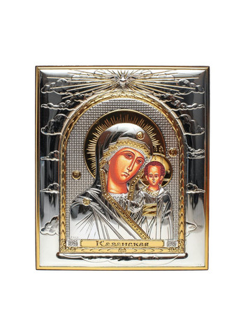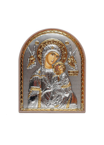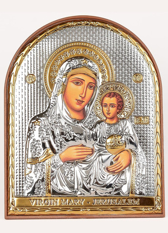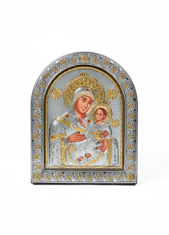 Образ має класичну аркову форму з дерев'яною рамкою.Основна частина ікони зображена на полотні - вона прописане методом шовкографії на лляному полотні натуральними фарбами «темпера» і обрамлена в срібну рамку, яка виготовлена із комбінованого листа металу miro-silvero – верхня частина якого ламінована сріблом 999°: в окремих місцях композиція вдало прикрашена сусальним золотом що придає їй більш контрастного вигляду. За допомогою сучасних методів обробки дорогоцінних металів та новаційного устаткування, виробнику вдалося досягнути найвищої якості деталізованого зображення на сріблі - всі елементи орнаменту композиції ікони чітко вирізьблені та яскраво проглядаються до найменших дрібниць. Зовнішній шар дорогоцінного металу ікони покритий спеціальним захисним лаком, що уберігає срібло від потемніння та старіння, захищаючи його від зовнішніх подразників таких як пил та сонячні промені – образ зберігатиме свій первозданний вигляд багато років.Закріплений оклад на дерев'яній основі коричневого кольору. (МДФ покритий шпоном горіха)Ікона має відкидну ніжку-підставку та отвір для зручного вертикального розміщення на стіні. Даний виріб чудо буде підійде до інтер'єру спальної кімнати, кухні, вітальні чи дитячої кімнати.Образ виготовлений в грецькому стилі іконографії з дотриманням всіх канонів давньовізантійського іконопису.Переваги: Багатошаровий матеріал окладу miro-silvero; Захищений від потемніння срібний оклад;Гармонійне поєднання срібла з золотом;Чіткий деталізований рельєфний узор;Європейське виробництво;Упакування:Виріб має оригінальне фірмове упакування від виробника - ікона надійно упакована в якісній картонній коробочці з логотипом компанії та м'який мішечок; дане упаковування гарантує, що виріб надійде Вам цілим та неушкодженим, а також в такому вигляді образу можна представити на подарунок близькій людині. Виробник: Silver Axion; Модельний ряд: Afon Silvero;Країна виробник: Греція;Купуючи в інтернет-магазині Silvericons срібний образ - Ви завжди будете впевненими у придбанні автентичного, якісного та оригінального виробу! Всі грецькі ікони мають Сертифікат Якості від виробника на тильній стороні, який засвідчує, що даний образ виготовлено на фабриці Silver Axion, а також вказує на модельну серію - Afon Silvero. Сертифікат надає Вам безстрокову Гарантію на дану ікону.