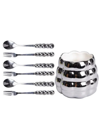 Набір столових приборів на підставці сріблястий - це стильний і практичний аксесуар для будь-якої кухні. У комплект входить 24 предмети, розраховані на 6 персон: 6 столових ложок, 6 чайних ложок, 6 виделок і 6 ножів. Завдяки сучасному дизайну та витонченому поєднанню матеріалів, цей набір стане чудовим доповненням до сервірування столу як у повсякденному житті, так і під час урочистих заходів. Основні характеристики: Кількість предметів у наборі: 24 шт; Кількість персон: 6; Матеріал: нержавіюча сталь, дерево; Упаковка: коробка; Розміри приладів: довжина столового ножа: 22.5 см; довжина столової ложки: 20 см; довжина столової виделки: 20 см; довжина чайної ложки: 14 см. Комплектація набору: столовий ніж: 6 шт; столова ложка: 6 шт; столова виделка: 6 шт; чайна ложка: 6 шт. Особливістю набору є дерев'яні ручки столових приборів, які не тільки додають естетичної привабливості, а й забезпечують зручне використання. Натуральне дерево приємне на дотик, не ковзає в руках і створює відчуття тепла та комфорту. Сріблясті металеві частини виконані з якісного матеріалу, стійкого до корозії, що гарантує довговічність і збереження гарного вигляду навіть у разі щоденного використання. Для зручного зберігання та організації передбачена металева підставка, яка допомагає компактно розташувати прилади та підтримувати порядок на кухні. Вона легка, міцна і легко миється, що робить її практичним доповненням до набору. Завдяки поєднанню стильного дизайну, функціональності та якості матеріалів, цей набір столових приборів стане ідеальним вибором для тих, хто цінує комфорт і естетику у своєму домі.