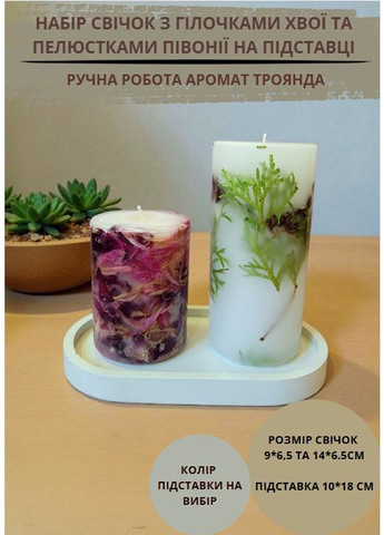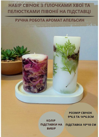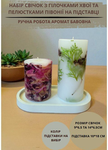 Вишуканий набір авторських свічок ручної роботи — справжня ода природній красі! Набір складається з двох свічок: