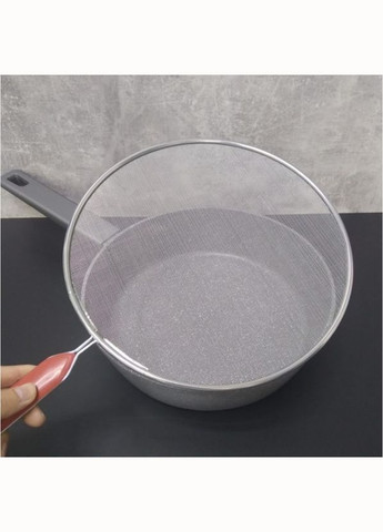 Антижирова захисна сітка (бризковий екран) – відмінне вирішення проблеми бризкаючого жиру та олії при приготуванні їжі! Екран не перешкоджає виходу пари, що дозволить вашій страві придбати апетитну рум'яну скоринку, а плита залишиться абсолютно чистою. Цей багатофункціональний засіб також послужить вам підставкою під гаряче або засобом для просіювання та проціджування! Сітка виготовлена із високоякісної нержавіючої сталі. Діаметр екрану – 25 см; товщина дроту – 0,5мм. Довжина екрану з ручкою – 29,5 см.