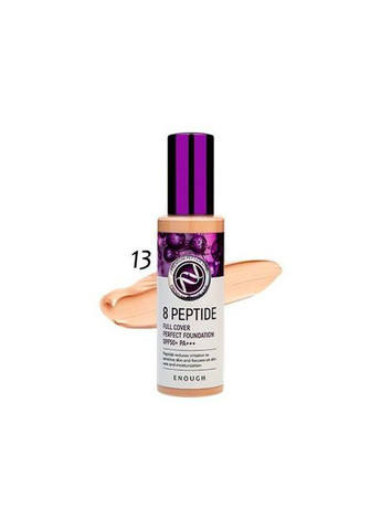 ❤️ № 13 Тональний крем Enough 8 Peptide Full Cover Perfect Foundation SPF50+ PA+++: ✨ Робить тон обличчя рівним, здоровим і свіжим. ✨ Не забиває пори, не створює відчуття «маски» на шкірі. ✨ Добре маскує недосконалості та тримається впродовж дня. ✨ Захищає епідерміс від впливу ультрафіолету. 💦 Тональна основа має м'яку, вологу текстуру, яка легко та рівномірно наноситься на шкіру, маскуючи вади. Тон прекрасно лягає на поверхню шкіри та легко розтушовується. Крім того, він гарантує осяйний і бездоганний зовнішній вигляд, зберігає макіяж свіжим із ранку до вечора та не створює відчуття маски на обличчі. 😍 Тональний крем Enough 8 Peptide Full Cover Perfect Foundation SPF50+ забезпечує ідеальний тон обличчя впродовж усього дня. 🌿 До складу засобу входять: 8 пептидів, колаген, гіалуронова кислота й бета-глюкан, які підвищують пружність і еластичність шкіри, надають свіжого вигляду. Основні інгредієнти: • Гідролізований колаген відновлює пружність і еластичність шкіри. Зволожує, підтягує та згладжує зморшки. • Діоксид титану зменшує негативний вплив сонячних променів на шкіру. • Комплекс пептидів стимулює вироблення власного колагену та покращує мікроциркуляцію крові, сприяє підвищенню пружності шкіри, запобігає появі пігментації. • Арбутин ефективно вибілює пігментацію, захищає шкірні покриви від УФ-випромінювання, має протизапальну дію. • Екстракт центели азіатської запобігає передчасному старінню. Робить шкіру підтягнутою та пружною. Зміцнює капіляри та покращує кровообіг. Прискорює регенерацію клітин шкіри. ✅ Тональний засіб підійде для будь-якої шкіри, зокрема чутливої. Представлений у 3 тонах: ❤️ № 13 — світлий відтінок, гармонує зі світлими тонами шкіри. ❤️ № 21 — натурально бежевий тон, під час нанесення ідеально зливається з кольором шкіри. Підійде для європейського тону шкіри. ❤️ № 23 ➡ Спосіб застосування: нанесіть необхідну кількість тонального засобу та рівномірно розтушуйте, використовуючи спеціальний спонж, пензель або подушечки пальців. 🔹 Об'єм: 100 мл.
