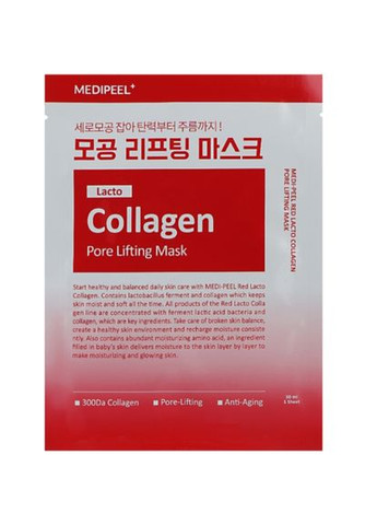 Маска‑ліфтинг для звуження пор MEDI‑PEEL Red Lacto Collagen Pore Lifting Mask, 30 мл — тканинна маска на основі тензеля з високим вмістом колагену (низькомолекулярного та високомолекулярного) та лактобактеріями. Має підтягувальний та зволожувальний ефекти, вирівнює тон і мікрорельєф шкіри, звужує пори та зміцнює епідерміс ✅ Переваги: Підтягує та вирівнює шкіру обличчя Звужує пори, регулює сальний блиск Відновлює, заспокоює та тонізує Інтенсивно зволожує, життєво важливий для сухої шкіри Містить колаген, ніацинамід і пробіотики