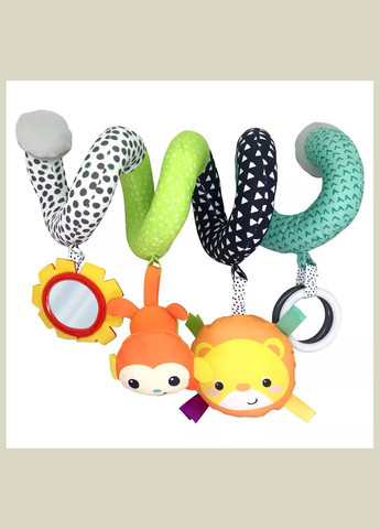 Плюшева спіраль Baby Mix (Бебі Мікс) Котик - це розвиваюча іграшка для дітей у формі веселої пружинки з безліччю яскравих деталей для розвитку уваги дитини, її сприйняття кольорів та моторики ручок. Основні переваги: вушка ведмедика з шурхотою, є підвіска-піщалка та прорізувач для зубок можна використовувати як підвіску для ліжечка або коляски, прикріплювати до дитячого килимка або шезлонгу всі деталі іграшки опрацьовані таким чином, щоб привернути увагу дитини, розвивати її та розважати Характеристики Ровжина в розтягнутому стані: близько 50 см Виробник: Baby Mix. Рекомендовано для дітей від народження.