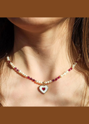 Чокер натуральні Перли+Рубін з підвіскою Серце фур-ра гіп-ний сплав колір золото d-3мм+- L-41-46см