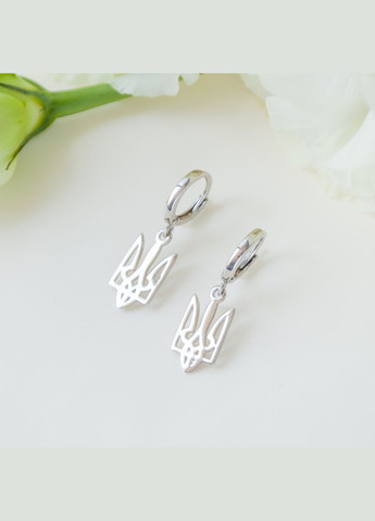 Сережки срібні Тризуби підвіски без камінців ВС-415 - вишуканий стиль, лаконічна подача. Нічого зайвого, тільки популярна сьогодні форма та яскравий блиск полірованної поверхні дорогоцінного металу 925 проби. Іноді срібло здається матовим, хоча насправді, це не так. Форма герба України - універсальна, бо підходить абсолютно під будь-який стиль одягу. Сережка має зручну англійську застібку, що дає можливість виробу гарно виглядати на вашому вушку. Прикраса надійно й міцно тримається, за рахунок класичної ювелірної застібки. Підвісок Тризуб ніжно поблискує та грайливо гойдається в такт вашого руху. Патріотична тематика гарно доповнює благородний срібний колір дорогоцінного металу. Сережки в такому виконанні - це гарний подарунок не тільки дівчині, а й панянкам більш старшого віку. Їх можуть носити всі, без виключення, під будь-який стиль одягу. Зараз, сережки із таким поєднанням композиці та зручності - це не просто вияв життєвої позиції, а й гарний оберіг для власниці, тож обирайте серцем й хай срібні сережки принесуть вам мир та щастя.