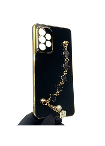 Чохол для телефона Samsung Galaxy A52 5G (SM-A526) жіночій із ремінцем з прикрасами та золотою окантовкою на самсунг а52 5г чорний Преміальний чохол з вишуканою золотою окантовкою та елегантним декоративним ремінцем на руку — стильне поєднання захисту та ювелірного дизайну. Прикрашений підвісками у формі конюшин, перлиною та металевими елементами, що додають образу унікальності. Виготовлений з міцного та гнучкого TPU, забезпечує надійний захист від ударів, подряпин і сколів, не обтяжуючи смартфон. Щільно прилягає до корпусу та підтримує бездротову зарядку. Ідеальний варіант як подарунок для жінки — підійде для дівчини, подруги, дружини, мами або сестри. Гарно виглядає у подарунковому пакуванні та буде доречним на 8 березня, День народження, День святого Валентина, Новий рік та інші свята. Характеристики: Матеріал: термополіуретан (TPU) Декор: знімний ремінець з підвісками (метал + акрил) Призначення: захист задньої панелі та бічних граней Підтримує бездротову зарядку: Особливості: не ковзає в руці, зручно тримати за ремінець