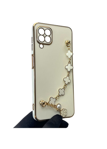 Чохол для телефона Samsung Galaxy M22 4G (SM-M225F) жіночій із ремінцем з прикрасами та золотою окантовкою на самсунг M22 4г білий Преміальний чохол з вишуканою золотою окантовкою та елегантним декоративним ремінцем на руку — стильне поєднання захисту та ювелірного дизайну. Прикрашений підвісками у формі конюшин, перлиною та металевими елементами, що додають образу унікальності. Виготовлений з міцного та гнучкого TPU, забезпечує надійний захист від ударів, подряпин і сколів, не обтяжуючи смартфон. Щільно прилягає до корпусу та підтримує бездротову зарядку. Ідеальний варіант як подарунок для жінки — підійде для дівчини, подруги, дружини, мами або сестри. Гарно виглядає у подарунковому пакуванні та буде доречним на 8 березня, День народження, День святого Валентина, Новий рік та інші свята. Характеристики: Матеріал: термополіуретан (TPU) Декор: знімний ремінець з підвісками (метал + акрил) Призначення: захист задньої панелі та бічних граней Підтримує бездротову зарядку: Особливості: не ковзає в руці, зручно тримати за ремінець