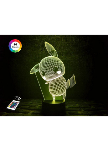 Відправка протягом 1-2 робочих днів.3D нічник "Пікачу" (ЗБІЛЬШЕНЕ ЗОБРАЖЕННЯ) подарункова упаковка + 16 кольорів + пульт ДК + мережевий адаптер + батарейки (3ААА) 3DTOYSLAMP 3D-світильники-нічникиторгової марки 3DTOYSLAMP з ефектом тривимірного зображення стануть відмінним доповненням будь-якого інтер'єру. Просте управління. Колір світіння змінюється натисненням на кнопку на корпусі, а також за допомогою пульта дистанційного керування. Є режим автоматичного перемикання кольорів та можливість регулювати яскравість підсвічування нічника. Безпека. Світильник не нагрівається, не має запаху. Робота від батарей і від мережі. 3D світильник "Пікачу" може працювати від мережі, комп'ютера або power-банку, а так само від батарейок (мікропальчикові 3 шт) ЙДУТЬ У КОМПЛЕКТІ. Управління за допомогою пульта: Направте пульт у бік бази. Натисніть ON — щоб увімкнути, OFF — для вимкнення лампи. Яскравість світіння регулюється за допомогою кнопок зі стрілками вгору/вниз. Для вибору кольору світіння натисніть кнопку відповідного кольору. FLASH — зміна кольору по порядку. STROBE — зміна кольору у випадковому порядку. FADE — кольори змінюються з ефектом загасання. SMOOTH — плавна зміна кольору. Вам понравилось кілька дизайнів 3D каганців і не знаєте який вибрати? Можливо, вашій дитині понравився інший мультяшний герой чи Ви змінили інтер'єр у вашому поміщенні? Не обов'язково купувати новий каганець! ; Унікальною особливістю 3D ламп є те, що зображення в ньому знімні. У нашому магазині представлений великий асортимент змінних пластин. Досить замовити у нас додаткове зображення – і у Вас новий 3D каганець! Характеристики: Колір світла: 16 кольорів світіння; Матеріал: акрил, пластик; Розмір: 27х13 см; Можливість: 5 Вт; Комплектація: подарункова упаковка, корпус, плоска пластина (ЗБІЛЬШЕНА ЗОБРАЖЕННЯ), пульт ДУ, USB-кабель 1.5 м, мережевий адаптер,батарейки (3ААА), інструкція на рос. мові; Гарантія: 12 місяців; Ресурс лампи: до 50 000 годин роботи МАТЕРІАЛІ НЕ МІСЦЯТИ ВРОЧКИ! НЕ НАГРІВАЄТЬСЯ! БЕЗПЕЧНО ДЛЯ ДІТЕЙ! Вся продукція торгівельної марки 3DTOYSLAMP пройшла ретельну перевірку на якість! Тип кріплення: На поверхню; Стан: Новий; Комплектація: корпус, акрилова пластина, шнур USB -1.5 м, мережевий адаптер, інструкція російською мовою; Тип: 3D-світильник; Споживання, Вт/год: 0.5; Гарантія: 6 місяців; Тип джерела світла: світлодіодні (LED); Потужність, Вт.: 5; Додаткові характеристики: 7 кольорів світіння (теплий білий, зелений, синій, червоний, фіолетовий, блакитний, жовтий); Вимикач: сенсорний, на корпусі; Матеріал корпусу: пластик; Живлення: Від мережі, комп'ютера, Power Bank, прикурювача в автомобілі, 3хААА (3 мікропальчикові батареї); Країна виробник товару: Китай; Розмір: 260х170х87 мм;