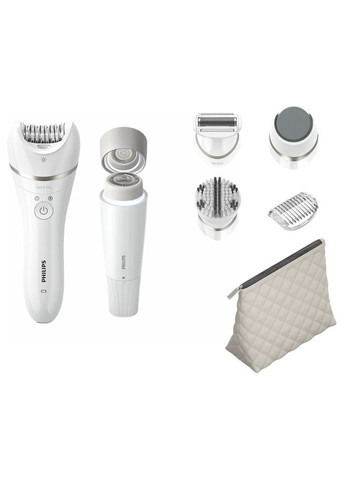 Тип епілятора: Дисковий Тип епіляції: Сухе/вологі Кількість дисків: 32 Живлення: Від акумулятора Дбайлива епіляція для гладкої шкіри до 4 тижнів Епілятори Philips Series 8000 - це ефективна та одночасно заботлива епіляція за рахунок удосконаленої системи епіляції, що забезпечує більше 70 000 захоплень волосків на хвилину. Це означає, що ви можете обробити велику поверхню за один рух і досягти бездоганної гладкості на термін до 4 тижнів. На гомілки у вас піде всього 10 хвилин! Широка епіляційна головка Широка епіляційна поверхня видаляє більше волосків одним рухом, прискорюючи процес епіляції. Зручна ручка S-подібної форми Завдяки ергономічному дизайну S-подібної форми пристрій легко переміщати по всьому тілу. Зручність використання і проста обробка важкодоступних ділянок тіла без зусиль. Бездротова робота, видалення волосся на вологій та сухій шкірі, підходить для використання у ванні або душі. Дизайн забезпечує захоплення, що виключає вислизання, і ідеально підійде для використання у воді. Тепер ви можете виконувати комфортну та дбайливу епіляцію прямо в душі чи ванні. Бездротова робота гарантує безмежну зручність. Унікальна підсвічування для видалення найтоншого волосся Завдяки унікальному підсвічуванню ви не пропустите навіть найтонших волосків. Ефективна епіляція на будь-яких ділянках тіла. Бритвена головка та насадка-гребінь для гладкого голення Бритвена головка забезпечує гладеньке та дбайливе голення різних ділянок тіла. У комплект входить насадка-тример для підрівнювання в зоні бікіні. Відлущувальна рукавичка запобігає появі врослого волосся Використання рукавички для пілінгу допомагає запобігти появі врослого волосся між сеансами епіляції. Пилка для ніг з обертовим диском забезпечує неймовірну гладкість стоп. Обертальна пилка-диск 3-в-1 забезпечує гладкість шкіри від п'яти до кінчиків пальців всього за 5 хвилин. Використовуйте плоску поверхню для великих областей, верхню частину для невеликих поверхонь та вигнутий край для обробки складних ділянок. Це дуже просто. Насадка для видалення небажаних волосків на чутливих ділянках тіла Для дбайливішої обробки передбачена насадка для чутливих ділянок, що дозволяє легко удаляти волоски на обличчі, в ділянці пахв і в зоні бікіні. Насадка для оптимального контакту для максимального комфорту під час епіляції Насадка для оптимального контакту забезпечує максимальний комфорт під час епіляції. Вона зменшує неприємні відчуття, м'яко розтягуючи оброблювану ділянку, щоб вам не потрібно було цього робити руками. Чохол у комплекті для зберігання всіх аксесуарів в одному місці Гарний чохол для зберігання всіх аксесуарів в одному місці.