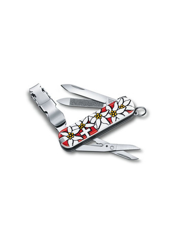 U0587946 Примітка: Не є холодною зброєю і не є предметом забороненим для продажу на території України Вид ножа: багатофункціональний, кишеньковий (EDC), швейцарський Конструкція: складаний Тип замку: Slip Joint Тип відкривання: виїмка на лезі Тип ріжучої кромки: гладка Конструкція осьового хутроанізму: на шайбах Форма клинка: drop-point Особливості: зубочистка, ножиці, малий клинок, пилка для нігтів, інструмент для чищення нігтів, кусачки для нігтів, пінцет, кільце для підвішування Країна виробник: Швейцарія Країна реєстрації бренду: Швейцарія Марка сталі / Матеріал клинка: нержавіюча сталь Твердість сталі: 55-56 HRC Загальна довжина: 110 мм Довжина клинка: 45 мм Довжина рукояті: 65 мм Товщина клинка: 1 мм Матеріал рукояті: пластик Поверхня клинка: plain Вага: 36 г Колір червоний Виробник: Victorinox Модель: NailClip 580 Edelweiss Гарантія, міс: 120 Бренд: Victorinox Серія ножів Delemont Nail Clip 580 виявилася настільки вдалою, що виникла потреба її розширення. В результаті чого вибір кольору розширився. Тепер можна вибрати не тільки з червоних відтінків, до покупки доступні: чорний, білий, камуфляж, едельвейс. Ніж Victorinox із серії Delemont Nail Clip 580 — вузькоспеціалізований ніж з таким особливим інструментом як кусачки для нігтів. Особливості моделі: ідеальний інструмент для догляду за нігтями 8 функцій включає пилочку для нігтів з інструментом для чищення нігтів У цій моделі об'єднано максимальну кількість пристроїв для догляду та обробки нігтів. Тут є ножиці, які добре справляються з обрізанням нігтів, а мікрозуб в них полегшує обробку навіть дуже щільних і товстих нігтів. Пилочка для нігтів з гострим кінчиком дозволяє як почистити під нігтями, так і дбайливо надати потрібну форму. А в ножах Victorinox пилочка для нігтів довговічний інструмент, що не вимагає заміни. Шматочки для нігтів допомагають обробити грубий край нігтів і надати їм акуратного і доглянутого вигляду. Шматочки Victorinox ідеально видаляють надлишковий матеріал нігтьової пластини, підрівнюють зазубрений ніготь, підходять для обрізки кромок і задирок. Догляд за нігтями з кусачками Victorinox – це дуже комфортний процес!. Набір функцій - 8: кусачки для нігтів малий клинок пилочка для нігтів з інструментом для чищення нігтів ножиці з мікрозубом пінцет зубочистка кільце для підвісу
