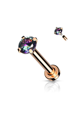 Титановий мікролабрет з внутрішнім різьбленням і прозорим круглим фіанітом. Сережки підходить для різних видів пірсингу губ (нижньої, верхньої, Монро, Медуза, Укус ангела, Укус павука та інших) або проколотий хрящ вуха (пірсингу в хелікс або в трагус). Лабрети з титану дуже легкі та безпечні для здоров'я, їх можна носити постійно. Титановий сплав Ti 6Al-4V ELI (ASTM F136), що застосовується для створення прикраси, є біосумісним і гіпоалергенним. Пірсинг з титану можна носити не тільки в проколах, що вже загоїлися, але і використовувати для первинного пірсингу. Титан не окислюється при контакті зі шкірою і викликає подразнень. Титанові вироби без покриття не змінюють відтінок з часом та ідеально підходять для щоденного носіння. Довжина штанги: 8 мм, Товщина: 1,2 мм Розмір фіаніту: 3 мм Матеріал: титан, фіаніт