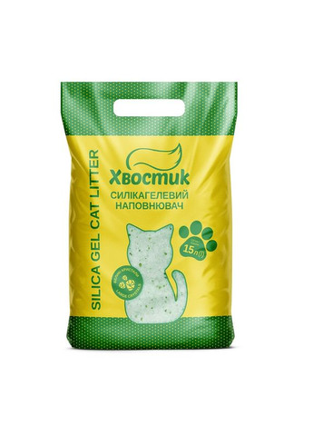 Силікагель – це висушений гель полікремнієвої кислоти (SiO2), який хімічно складається з тієї ж сполуки, що й звичайний пісок, але є високопористим тілом, тому має велику площу поверхні (800 м²/1 г). Завдяки цій властивості силікагель має унікальну абсорбуючу (вбираючу) здатність. Волога і запах зникають у силікагелі миттєво, але сам наповнювач ніколи не перетворюється на в'язку масу і не прилипає до котячих лап, а отже, не розноситься по дому. Завдяки дрібній фракції силікагелевого наповнювача Хвостик (0,5-2 мм) більше не страшно ходити по дому босоніж (не коле ноги), а також можна не переживати, що чутливі лапки кота травмуються. Даний силікагель можна також використовувати для маленьких вихованців, тому що дрібну гранулу складніше з'їсти, але ми рекомендуємо робити це з обережністю, тому що поїдання силікагелю небезпечне для здоров'я котика.Силікагель - це гігієнічний наповнювач, він чудово справляється з будь-якими бактеріями, підтримуючи чистоту в будинку та охороняючи здоров'я кота. В середньому один пакет 4.8 л силікагелевого наповнювача Хвостик розрахований на 4 тижні для одного кота. На цей час ви забуваєте про неприємний запах і зайвий клопіт по догляду за домашньою твариною. Дрібні зелені гранули додають силікагелю Хвостик естетичності і є універсальними як для котів, так і для кішок.Інструкція із застосування:1. Наповніть сухий та чистий туалет силікагелевим наповнювачем (шар від 3 до 5 см).2. Регулярно видаляйте тверді відходи.3. Перемішуйте вміст лотка раз на 1-2 дні.4. Не рідше 1 разу на 3-4 тижні повністю замінюйте наповнювач на свіжий.5. Щоб уникнути забруднення каналізаційних стоків, не викидайте використаний силікагелевий наповнювач в унітаз.Вага: 1,82 кг