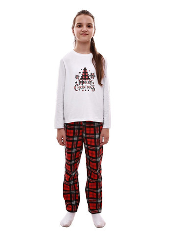 Утеплена піжама для підлітків із футера з начосом, складається з кофти з довгими рукавами (на манжетах) та з коміром-стійкою. Штани на манжетах з широкою еластичною тасьмою. Модель виконана в комбінації однотонного полотна з набивним та актуальним принтом у клітинку, на кофті стильний новорічний малюнок. Комплект може використовуватися, як домашній костюм. Можна створити образ family look з моделями 3434, 3467, 2483. Полотно якісне, з натуральним складом, має гарну теплоізоляцію, м'який начіс приємний до тіла. Полотно: футер із начосом. Склад: 100% бавовна. Рекомендації по догляду: прати при температурі не більше 30°C, малюнок прасувати тільки за виворотом.