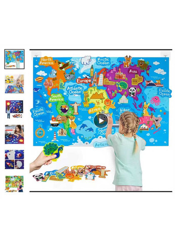 Цей яскравий фетровий плакат — захоплива навчальна гра для малюків, яка допомагає вивчати світ, океан, тваринок у легкій ігровій формі. Його зручно закріпити на стіні за допомогою гачків, а м’які елементи з фетру легко чіпляються та знімаються за допомогою липучок в комплекті. Гра сприяє розвитку мовлення, логіки, пам’яті та просторового мислення. Ідеально підходить для домашнього навчання або як яскравий освітній декор у дитячій кімнаті. Особливості: - фетровий плакат з дизайном карти світу; - розмір карти: 101х65 см; - у наборі гачки для підвішування й липучки; - назви континентів і океанів англійською мовою; - фетрові тваринки з різних частин світу; - допомагає вивчати географію, тварин та англійські слова. Упаковка: пакет Розмір упаковки: 28 х 5 х 34см * Характеристики продукту та упаковка можуть змінюватися виробником без попередження.