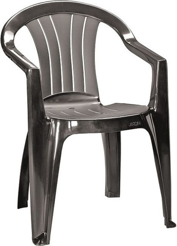Стілець садовий пластиковий Keter Sicilia, сірий Бренд: Curver® (Угорщина) Матеріал: гладкий пластик Колір: сірий Розмір стільця (Д*Ш*В): 56*58*79 см Вага: 2,38 кг Макс. навантаження: 110 кг Розмір упаковки (Д*Ш*В): 56*58*79 см Гарантія: 6 місяців Sicilia - це універсальний стілець, який поєднує в собі комфорт з простим, позачасовим стилем. Ці садові меблі характеризуються легкою і в той же час міцною конструкцією. Стільці можна штабелювати (складати один на інший), що дозволяє економити місце і полегшує їх зберігання. Стійкі до впливу погодних умов і УФ-випромінювання. Легко миються. Особливості: закруглена форма спинки, обтікаючи форми підлокітники