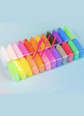 Дитяча іграшка повітряний пластилін містить 24 кольори повітряного пластиліну та набір пластикових ножів. Не прилипає до рук, без запаху, м'який та приємний на відчуття. Продається оптом – упаковкою. Дуже потрібна фасування з 24 кольорів. Чому легкий чи повітряний пластилін? Відповідь проста. Після виготовлення фігурки досить пару годин і вона висихає і стає легкою та повітряною. В результаті отримуємо виготовлене виробу, яке перетворюється на справжню легку іграшку якою нестрашно зім'яти або поламати, т.к. вона набуде колишньої форми та розміру. Розмір упаковки (дл/вис/шир): 250х50х100 мм Тип пластиліну: застигаючий Кількість штук в упаковці: 1 Кількість кольорів: 24 шт. Продається: упаковкою Мінімальне замовлення: 1 паковання Стан: нове
