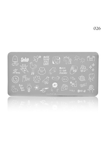 З пластиною GLOSS Company 26 створення стильних дизайнів стане ще простішим. Високоточне гравіювання гарантує чіткість кожного візерунка. Як використовувати: 1. Очистьте пластину перед початком роботи. 2. Оберіть дизайн і нанесіть лак для стемпінгу GLOSS Company. 3. Видаліть надлишки шкребком. 4. Штампом перенесіть малюнок. 5. Віддрукуйте його на ніготь. 6. Покрийте топом і просушіть у LED-лампі. 7. Очистьте шкіру від залишків лаку. Догляд за пластиною: • Очищуйте після кожного використання. • Зберігайте в сухому місці. • Використовуйте зі штампом і лаком GLOSS Company. Розмір: 6×12 см.