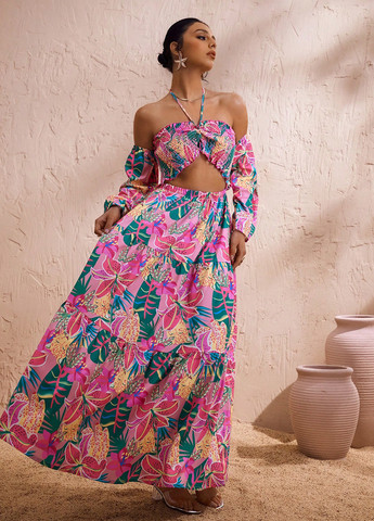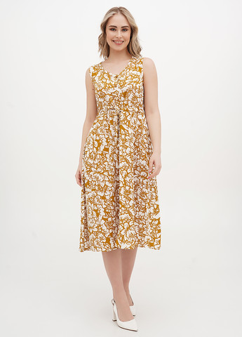 Літня сукня міді – втілення жіночності та елегантності. Легка тканина софт із квітковим принтом. А-силует, завищена талія, прилеглий верх і розкльошена спідниця створюють витончений образ. V-подібний виріз додає шарму. Ця модель прекрасно підкреслює фігуру і створює елегантний, романтичний образ, який підійде для будь-якої події – від повсякденного носіння до особливих випадків.