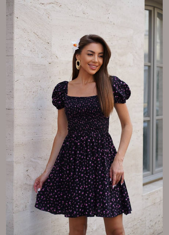Сукня жіноча легка літня з гудзиками до талії, з спідницею, виріз горловини - сорочковий, сезон - літо, стиль - кежуал (повсякденний), декор - з поясом, колір - рожевий, принт тканини - квітковий принт, Колір додатковий - бузковий, тканина - Софт, склад - 65% поліестер, 35% віскоза, силует - прямий, посадка - пряма, довжина моделі - по коліно довжина рукава - з короткими рукавами.