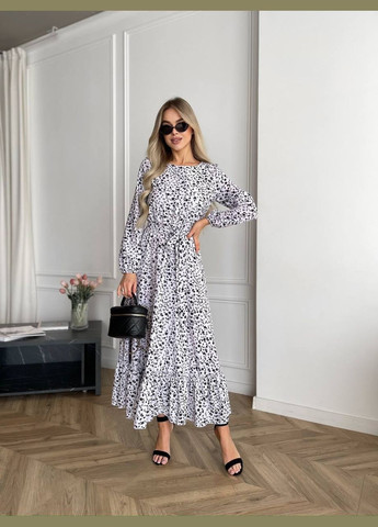 Сукня з комірцем зі штапелю з квітковим принтом, не обтягує і приховує недоліки фігури.