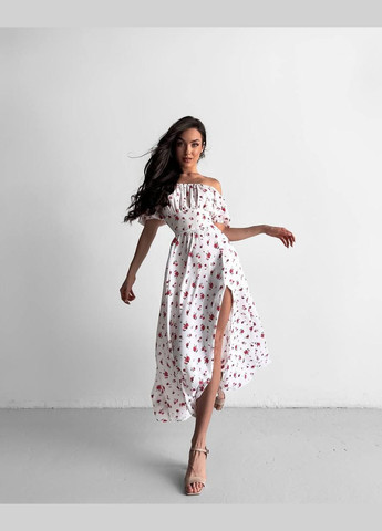 Сукня доступна у квітковому принті — пастельному або контрастному, залежно від настрою. Малюнок на тканині додає образу живості, відчуття літа, природи й легкого флірту.