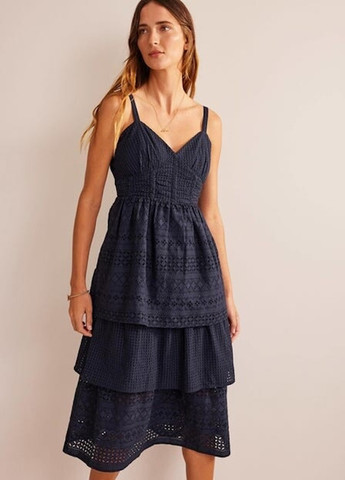 Структурований ліф цієї сукні міді broderie anglaise чудово збалансований багатоярусною спідницею ra-ra, додаючи романтичної чарівності вашому вечірньому образу. Стильно одягніть його на наступну вечірку або весілля з блейзером та підборами. Підходить на низький зріст (до 164 см).
