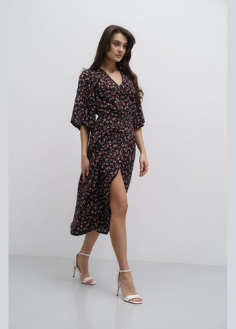 Верх сукні має елегантний крій на запах, що створює витончений силует і додає виробу особливої чарівності. Тонка еластична резинка на талії забезпечує ідеальну посадку та підкреслює жіночний силует, роблячи акцент на талії.