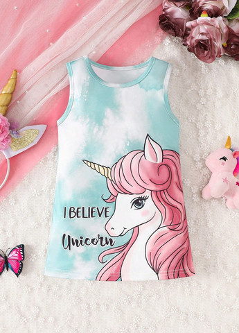 Літня сукня для маленьких дівчаток з принтом єдинорога.